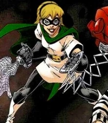 Gwen Stacy was a brilliant young inventor and the daughter of a police captain. As supervillains became more and more common, Gwen worried that her father would be gravely injured should he have to confront them. Gwen attempted to design new weapons and gadgets that she thought would even the odds, but her inventions were dismissed. Upon learning that her boyfriend Peter Parker had used his own inventions to be a superhero known as the Tarantula, Gwen decided to create her own costumed persona and became the Gimmick Girl.